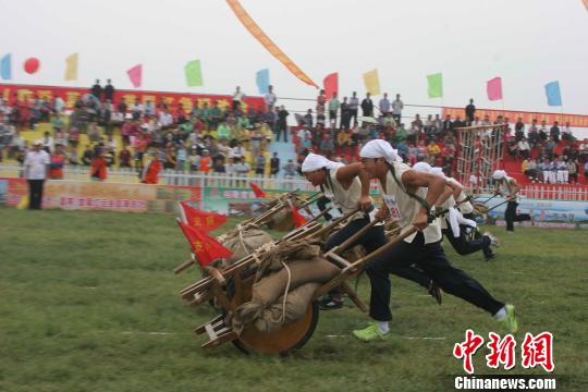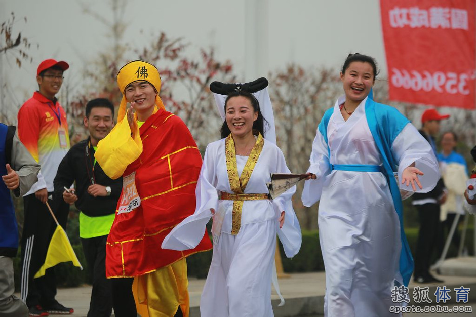 搜狐:高清圖 臨沂國際馬拉松 奧運冠軍推獨輪車助陣