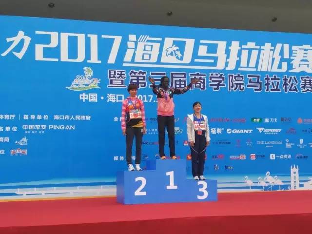 2017平安·富力?隈R拉松女子全程前三于頒獎臺上合影留念