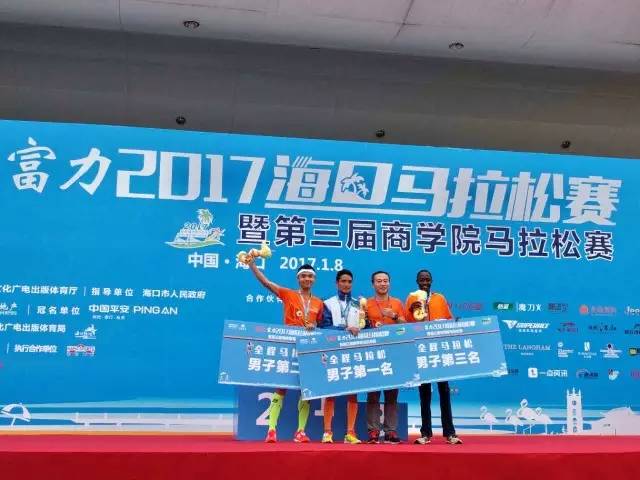 富力地產集團副總裁兼海南區(qū)域公司董事長趙沨先生為2017平安·富力?隈R拉松男子全程前三頒獎