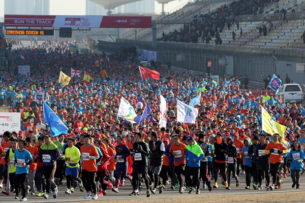 2015年元旦,在上海奧迪國際賽車場誕生了一項(xiàng)充滿創(chuàng)意的跑步賽事,Run the track——賽道跑,這種往日只屬于F1車手、技師、工程師們的小眾跑步活動(dòng),在主辦方的努力下,成功在上海奧迪國際賽車場舉辦8000人參加的迎新跑步賽,即首屆蒸蒸日上四環(huán)跑。