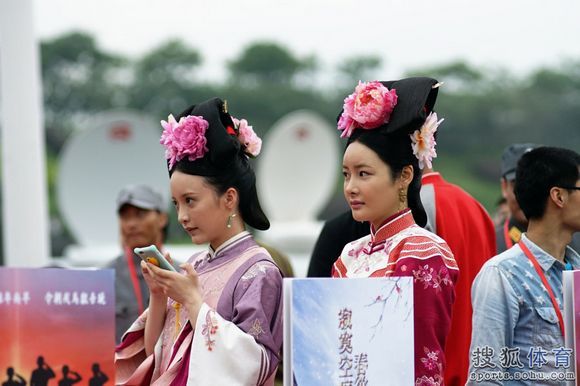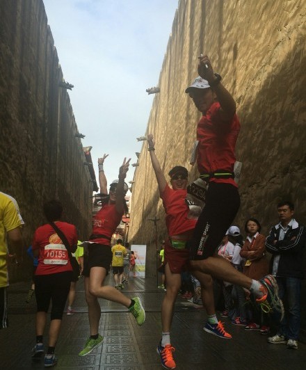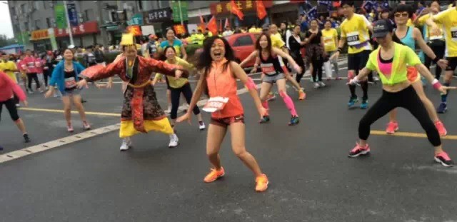 除了美景、明星以外,影視城藝術(shù)團(tuán)還組織了數(shù)百名演員,身著歷朝歷代的服裝或參加比賽,或在沿途為選手們助威,或在終點(diǎn)獻(xiàn)上精彩的演藝節(jié)目。不少參賽選手也“入鄉(xiāng)隨俗”地穿上了各種cosplay服裝。有位跑友就說:“各種古人在旁邊加油還亂扭啊,笑辟了要...完全不能專心跑步”;另一位跑友解釋說:“丑的人才問跑多快,美的人會回答嗨不嗨”。