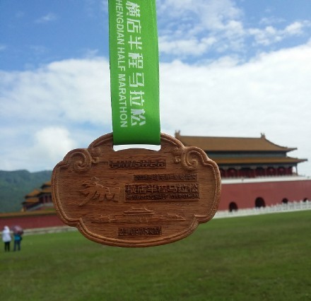 跑到終點(diǎn)后,更讓選手們亮瞎眼。橫店所在的東陽市以東陽木雕而聞名中外,比賽的完賽獎牌就是用名貴的緬甸花梨木為原料、經(jīng)木雕大師陸光正設(shè)計(jì)、用傳統(tǒng)的木雕工藝制作的原汁原味的紅木獎牌。據(jù)說這塊光這塊獎牌就價值在百元左右,已經(jīng)值回報名費(fèi)了。更不用說完賽包中的功能性飲料和能量膠,以及組委會提供的專業(yè)賽后拉伸修復(fù)服務(wù)了。
